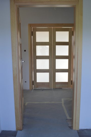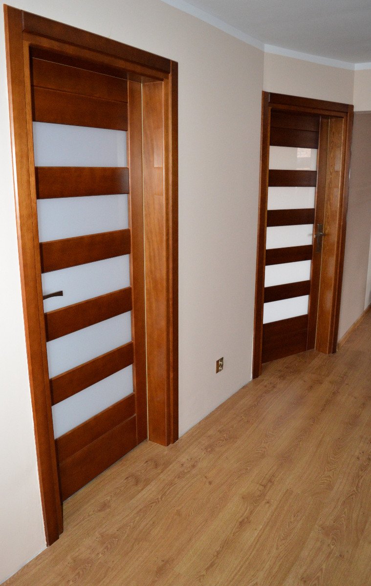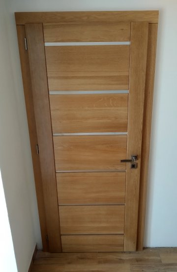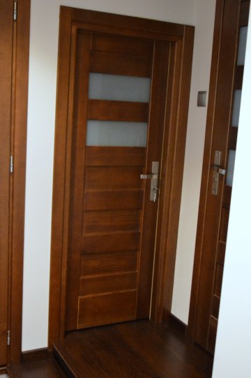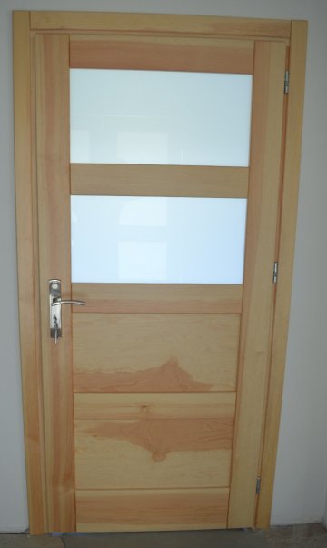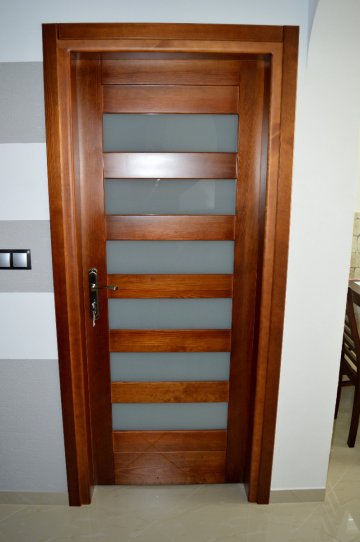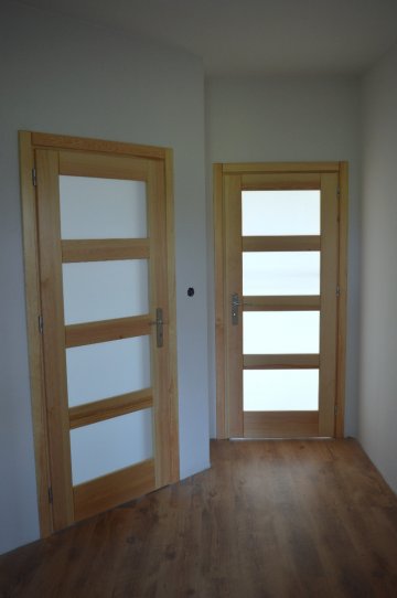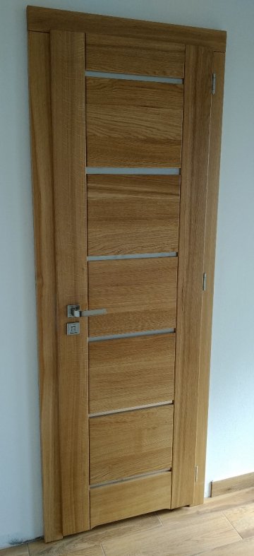 Drzwi drewniane wykonane są 100% z drewna litego: dąb, jesion, sosna. Masywna konstrukcja skrzydła o grubości 40 mm oraz ościęznicy o grubośći 60mm. Do każdych drzwi stosujemy opaski regulowane. Kolorystyka oraz wzornictwo do ustalenia.